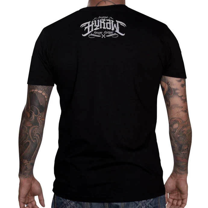 men’s style shirt brand HYRAW with quality printing. T-shirt has a tapered fit – SLIM FIT. Color: Black. Composition: 100% cotton (weight – 180 gr / m²). Approximate dimensions in cm (circumference is 2 x width)